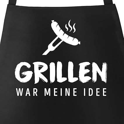 Moonworks Grill Schurze Fur Manner Mit Spruch Grillen War Meine Idee Spruch Lustig Bratwurst Baumwoll Schurze Kuchenschurze Schwarz Unisize Amazon De Garten