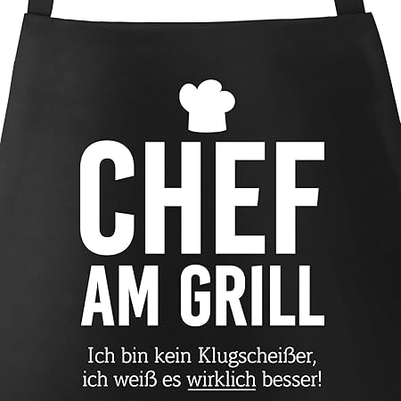 Moonworks Grill Schurze Fur Manner Mit Spruch Chef Am Grill Ich Bin Kein Klugscheisser Ich Weiss Es Wirklich Besser Kuchenschurze Schwarz Unisize Amazon De Garten